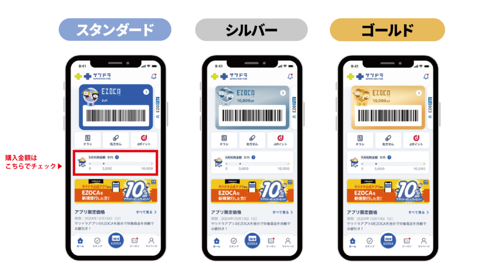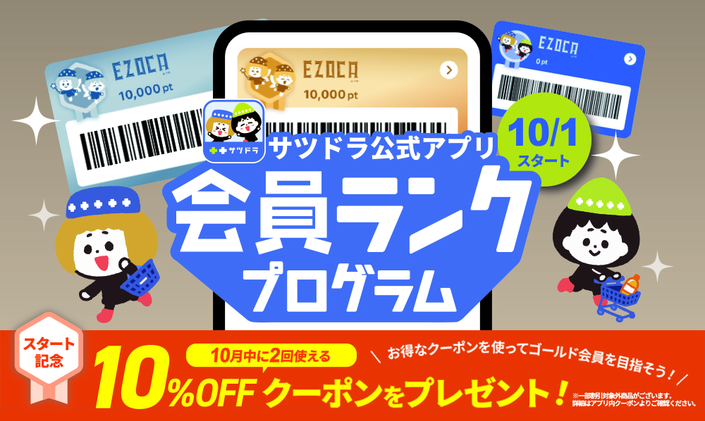 ※会員ランクプログラムに参加するには、サツドラ公式アプリでEZOCAを提示する必要があります。