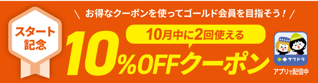 10月中に2回つかえる【10%OFFクーポン】をサツドラ公式アプリにて配信中です!