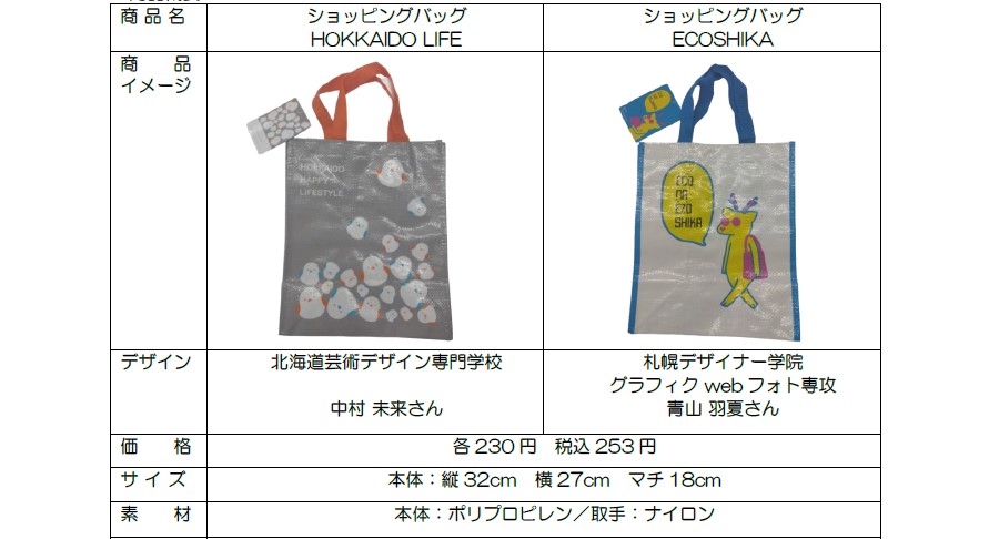 北海道の学生がデザインした 「ショッピングバッグ」を商品化、発売へ